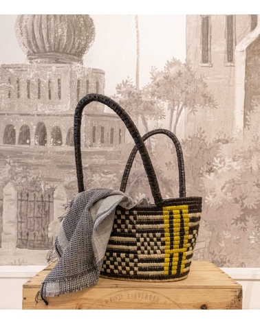The SITARGUNJ woven basket features an ethnic motif and will be perfect for your home, as a decorative accessory or fruit basket. Use it as a shopping accessory or for a day at the beach.