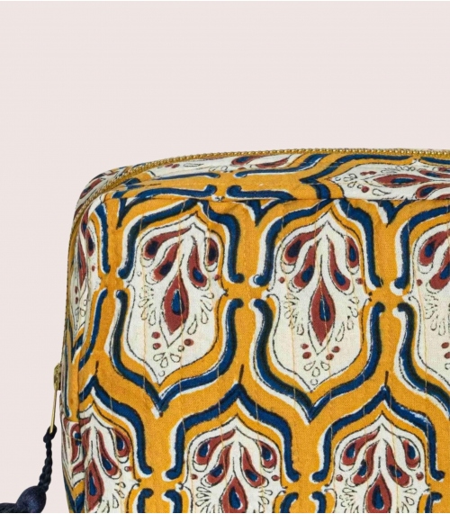 The PRANJAL quilted tassel case will be your ideal travel companion. To give or to treat yourself, its elegant Art Deco pattern will add a warm touch to any bathroom.
