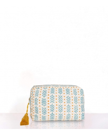 The THEA quilted pom-pom case will be your ideal travel companion. Whether as a gift or for yourself, its elegant geometric pattern will add a warm touch to any bathroom.