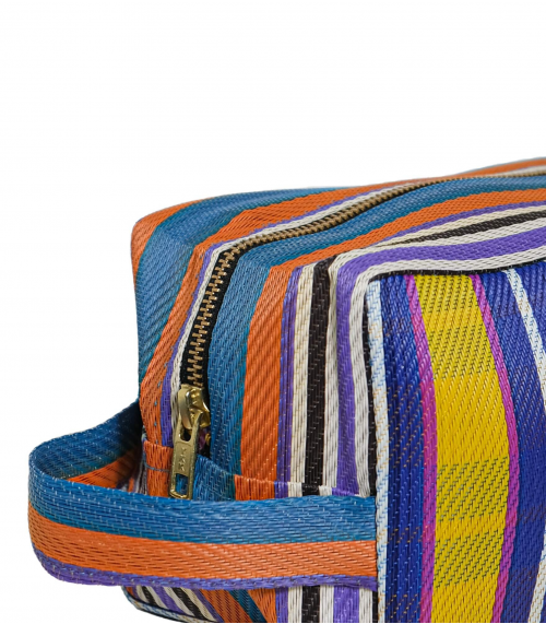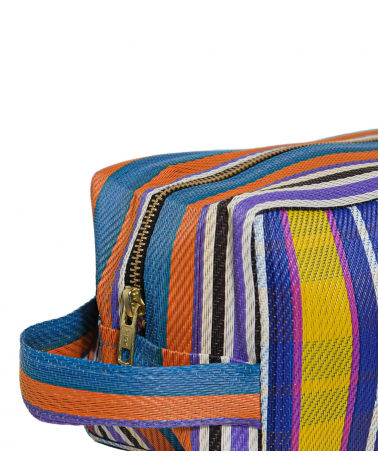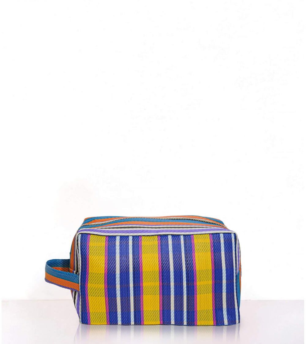 The BAZAR5 woven toiletry bag is the ideal travel accessory for your city outings or seaside vacations. It will brighten up your outfit with the combination of its colorful stripes and shimmering colors.
