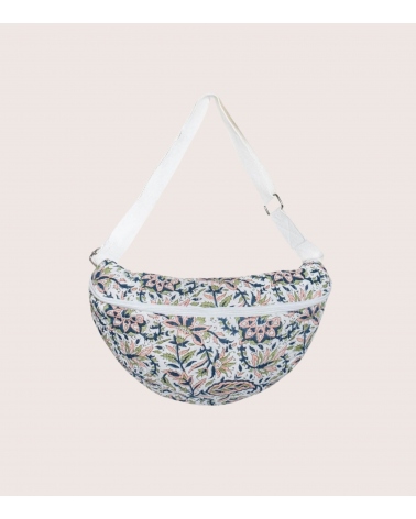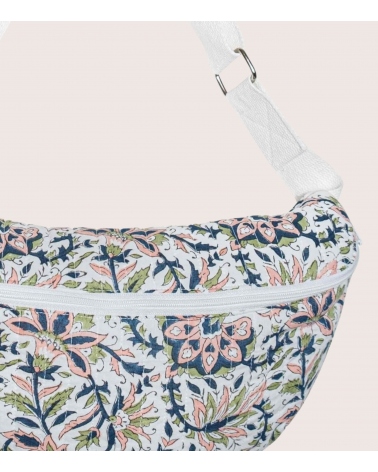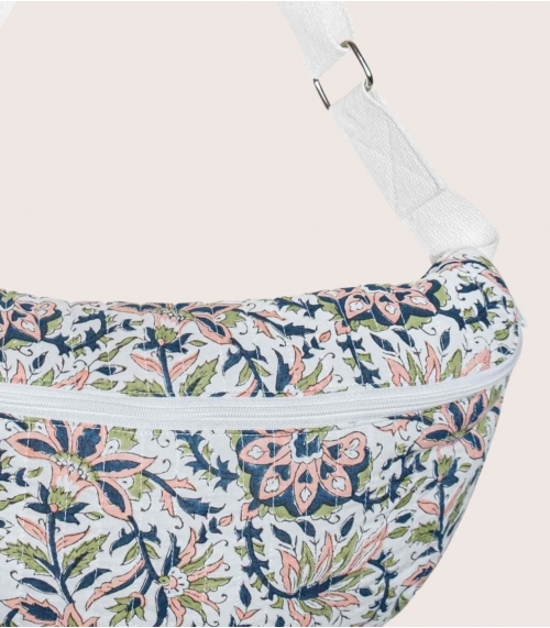 Our floral banana bag Sana in quilted cotton is designed in Paris and hand block printed in India by expert artisans. Block printing is an ancestral technique from Rajasthan in the West of India. It consists of hand printing fabric using carved wooden blocks.