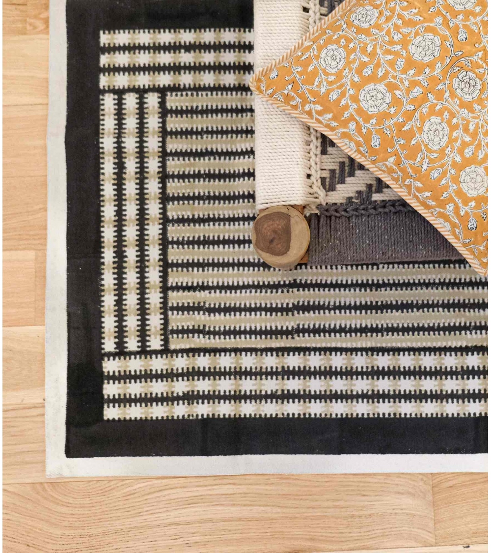 The LATTA cotton rug features warm shades and a graphic pattern for a poetic, contemporary elegance to your interior design. Living room, bedroom, it brightens up any space. Accumulate motifs and colors for an enchanting decor and a refined interior.