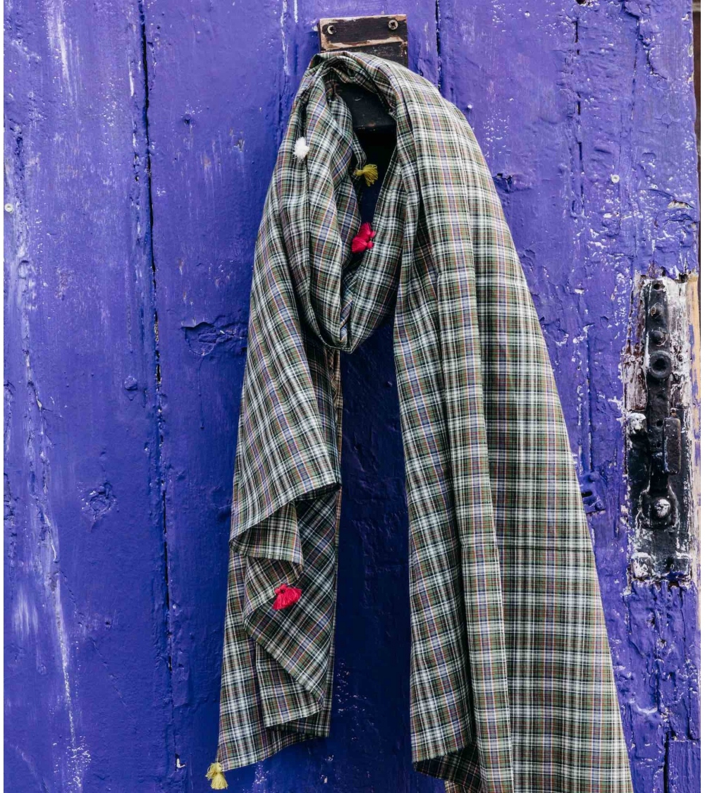 100% khadi cotton Dimensions: 79x39 inches Delicate wash at 30°C recommended, do not tumble dryManufacture and craftsmanship