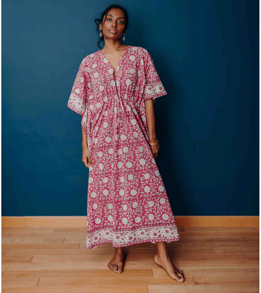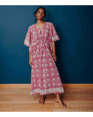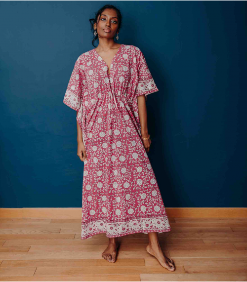 The BANNA cotton kaftan comes in two lengths and features a delicate floral motif. Over a swimsuit, for your summer escapades or evenings out, you'll love its cut, softness and shimmering color!