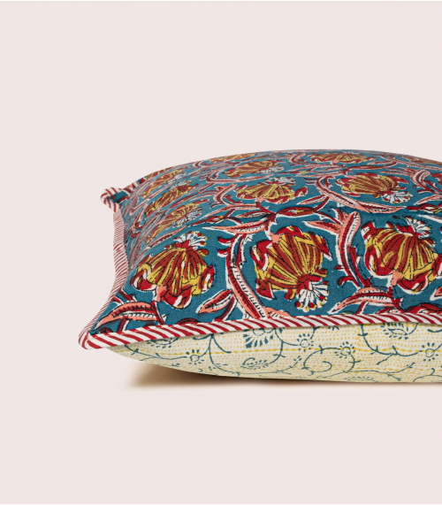 The JAIPUR cushion cover boasts a luminous palette of colors and an Indian floral motif, bringing warm, poetic elegance to your home decor. Living room, bedroom, it brightens up any space. Accumulate patterns and colors for a bewitching decoration and a refined interior.