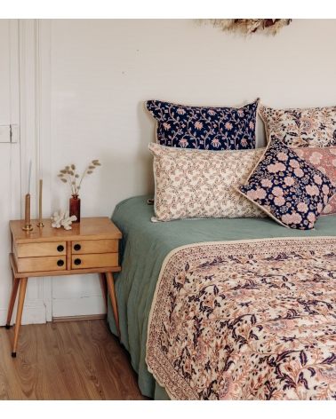 Made in India by expert craftsmen using the traditional blockprint technique from Rajasthan, this handmade piece contributes to preserving traditional skills and supporting artisan communities.