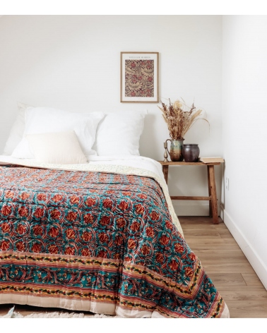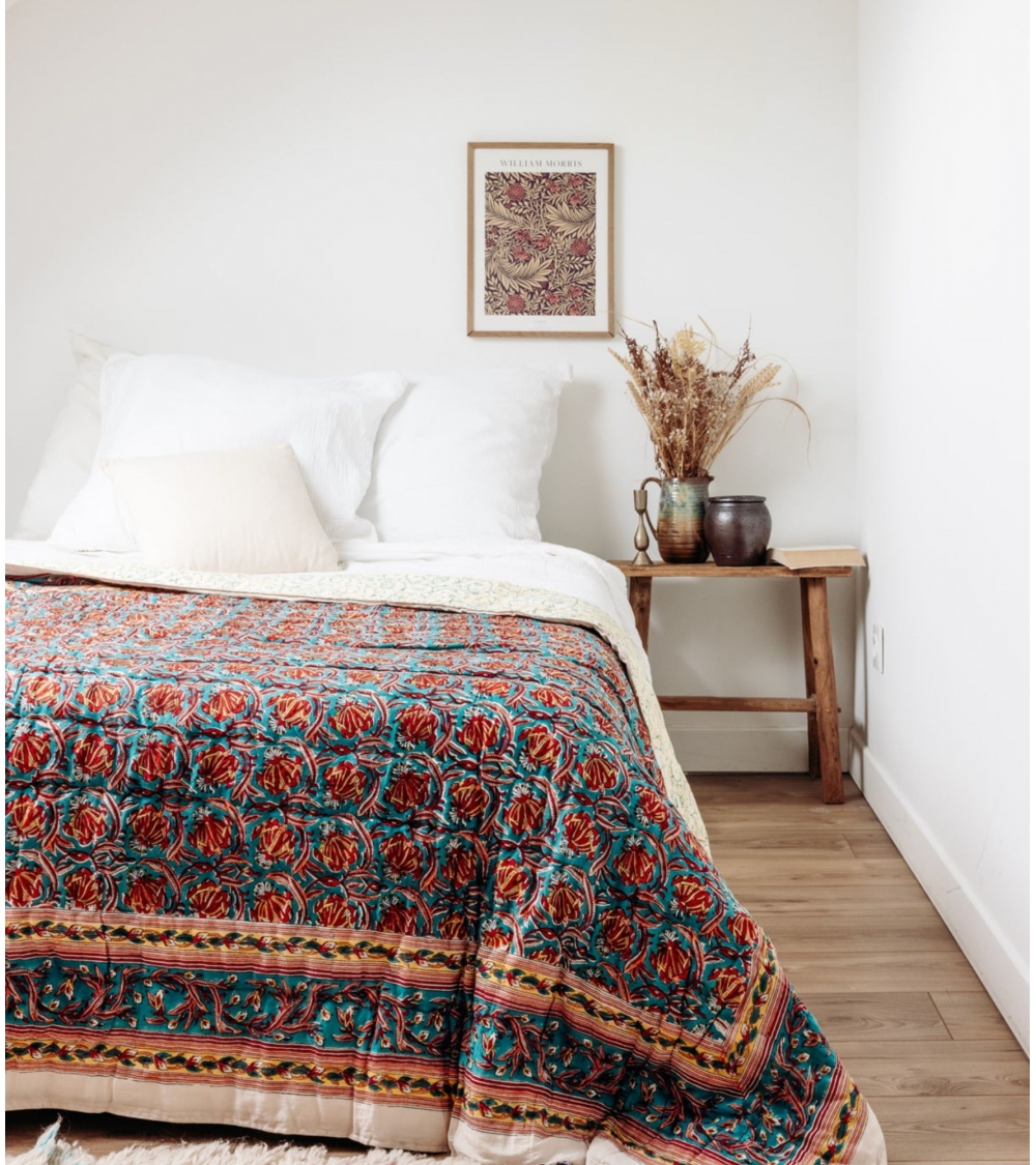 Made in India by expert craftsmen using the traditional blockprint technique, an ancestral skill from Rajasthan, this handmade piece contributes to preserving traditional know-how and supporting artisan communities.