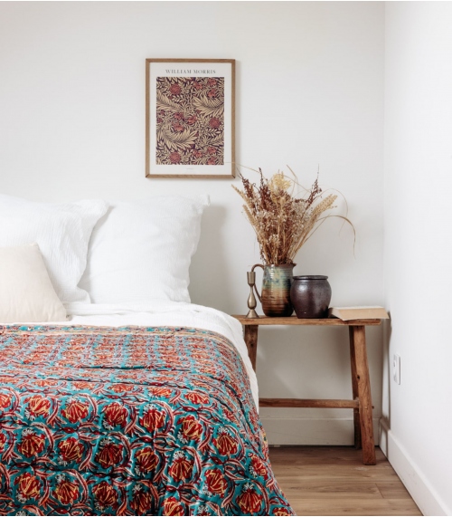 The JAIPUR bedspread reveals its Indian floral motifs in colorful shades, for a touch of poetry and softness in your home. Living room, bedroom, it will be ideal as a light comforter or plaid on your sofa. Assemble this bedspread with our cushions for a warm, refined interior.