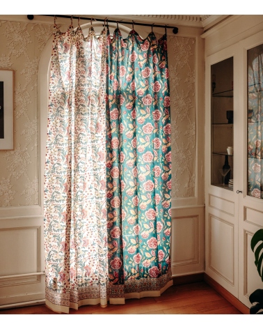 The LONI cotton voile curtain features warm shades of color and a luminous floral motif, bringing elegance and poetry to your home decor. Associate patterns & colors for an enchanting decor and a poetic interior.