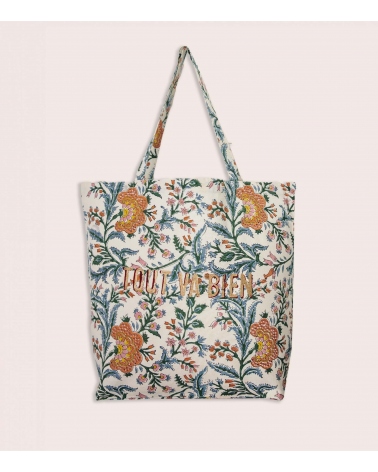 The Archana "Tout va bien" tote bag is the perfect companion for your market trips, shopping outings or weekend getaways by the sea. Its large floral arabesque pattern and joyful message "Tout va bien" will brighten your everyday look. Each piece is unique, with its own feel and subtle irregularities.
