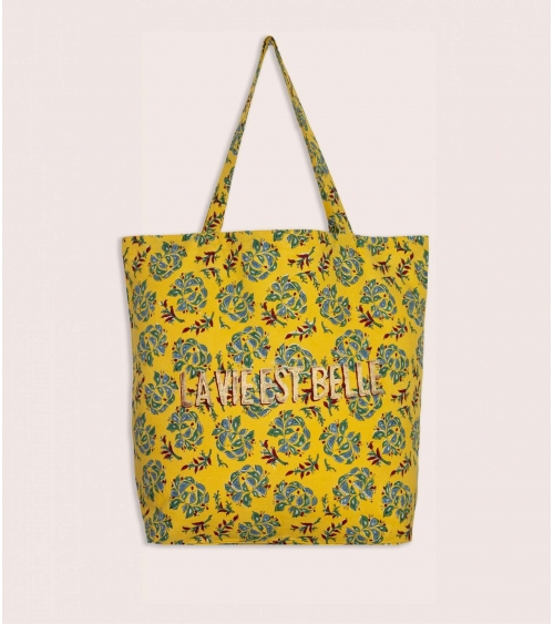 The Sarso "La Vie est Belle" tote bag is the perfect companion for your market trips, shopping outings or weekend getaways by the sea. Its boteh floral pattern and joyful message "La Vie est Belle" will brighten your everyday look. Each piece is unique, with its own feel and subtle irregularities.