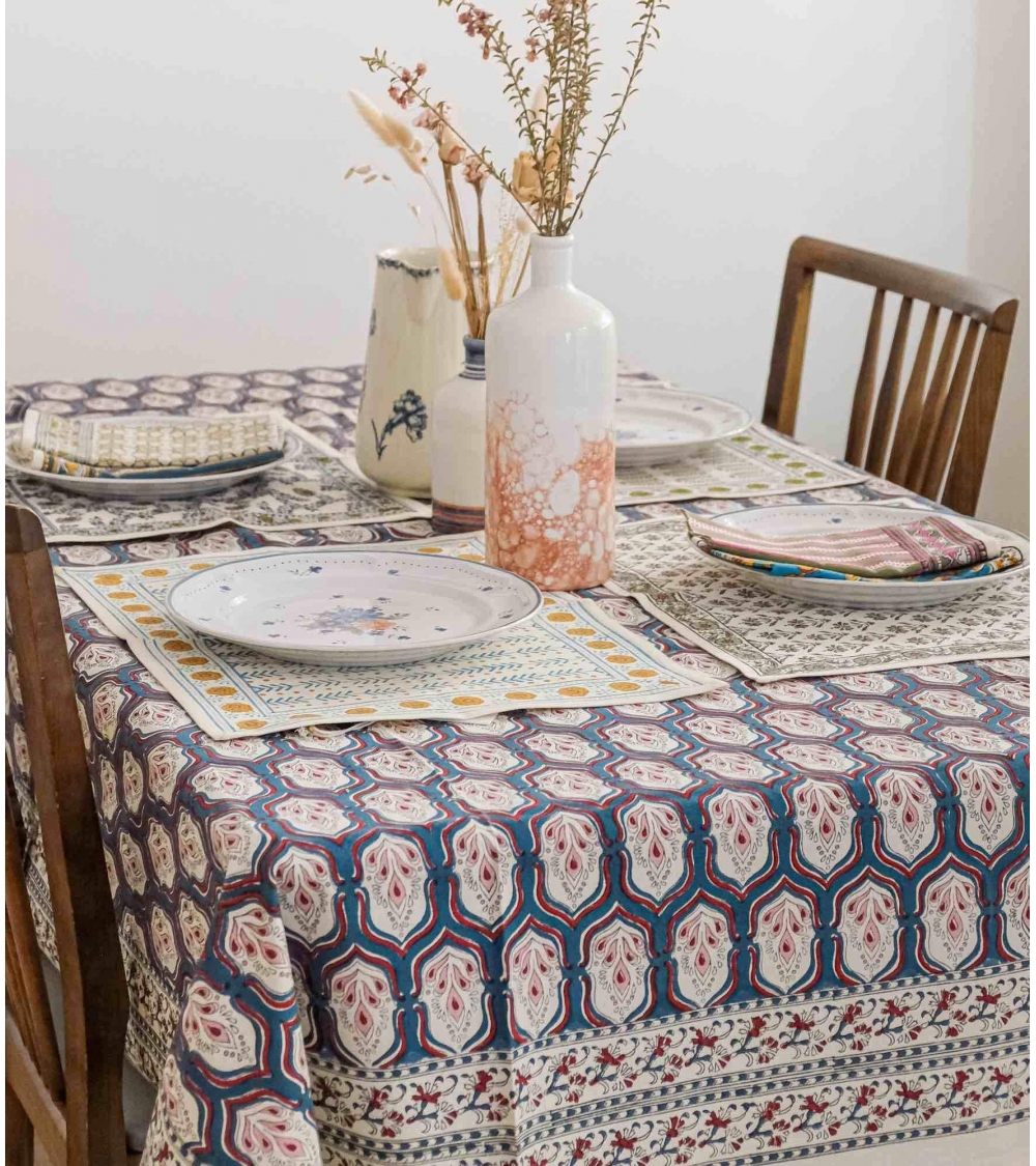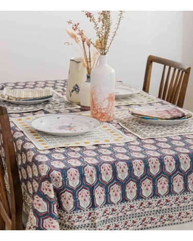 The PRANJAL cotton tablecloth is a bright and cheerful piece to embellish your table with its Art Deco pattern. Ideal for creating a contemporary and colorful atmosphere in your home, this tablecloth can be matched with our placemats and napkins for perfect harmony.