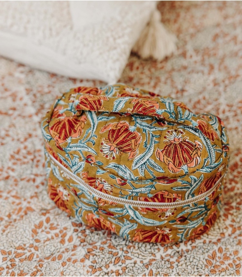 Jamini a aussi créé une gamme de trousses de toilette en coton, disponibles en plusieurs tailles afin de répondre aux envies et exigences de ses clientes. Nos fameux motifs colorés Rang, Reema, Jaipur, Anima habillent ces accessoires indispensables à toutes les femmes.