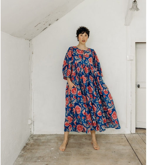 Disponibles en plusieurs motifs et coloris, nos kaftans en coton imprimés à la main au tampon de bois vous apportent des sensations inédites de douceur et de liberté de mouvement. Nos modèles les plus enveloppants comme les pyjamas seront vos parfaits compagnons de nuit.