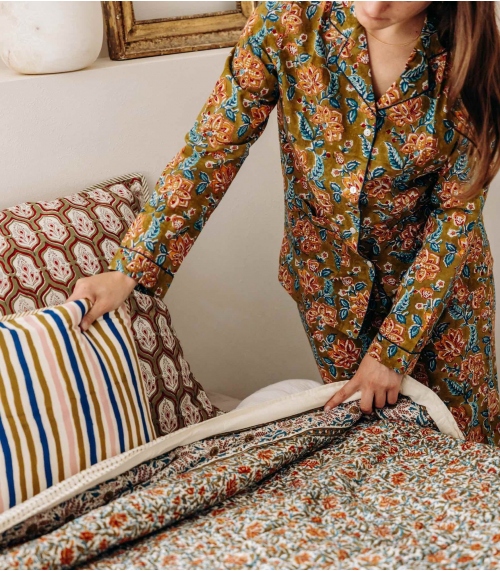 Pyjamas doux et imprimés main : pour des nuits paisibles et des matins baignés de poésie indienne.