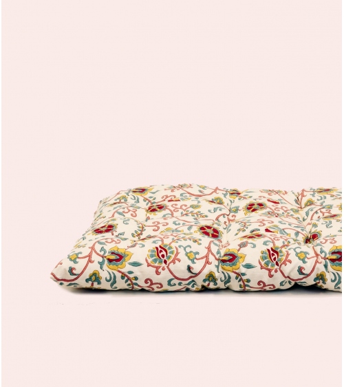Tout simplement chic et toujours tendance, le matelas indien en coton aux coloris écru, rose nude et aux motifs floraux ou géométriques est l'élément de décoration pratique et élégant qu'il faut intégrer à votre intérieur. Vous adorerez le moelleux de son garnissage et la douceur de son tissu imprimé.
