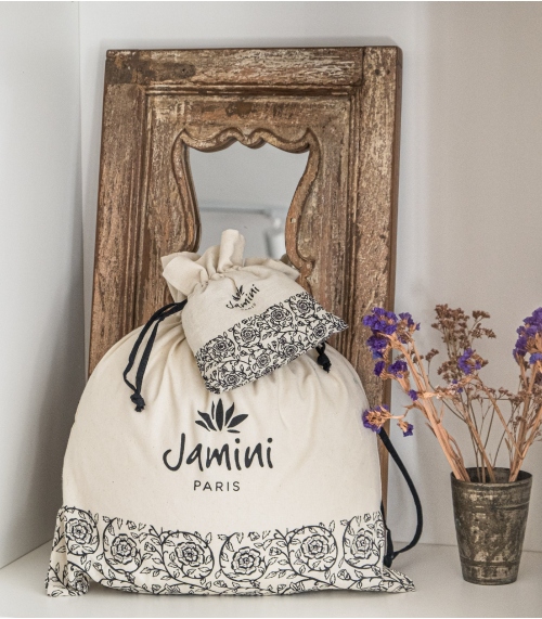 Les pochons en coton s'allient aux sacs en jute, emballages durables et élégants créés en collaboration avec l'agence de design française Rive Noire.