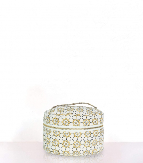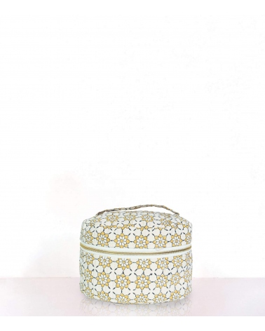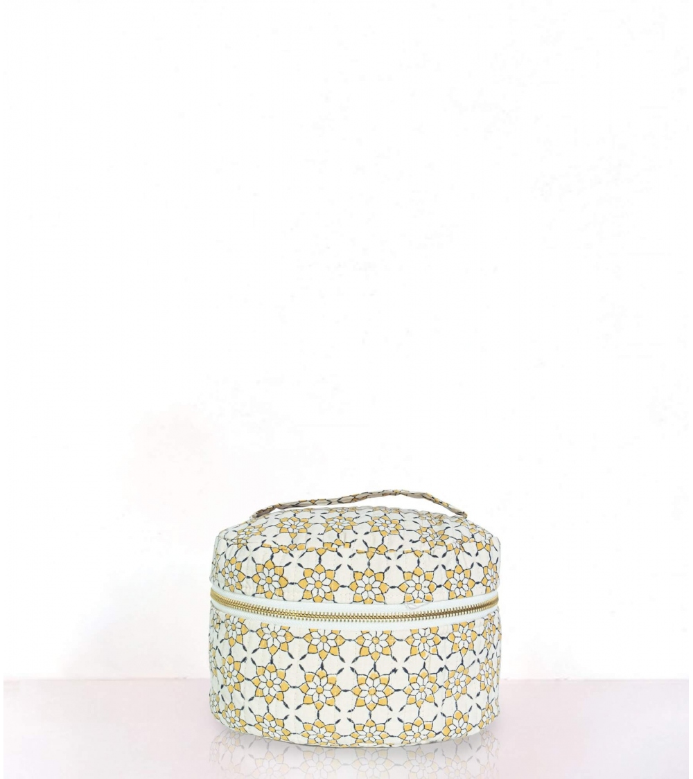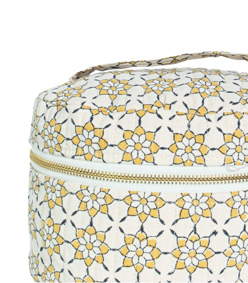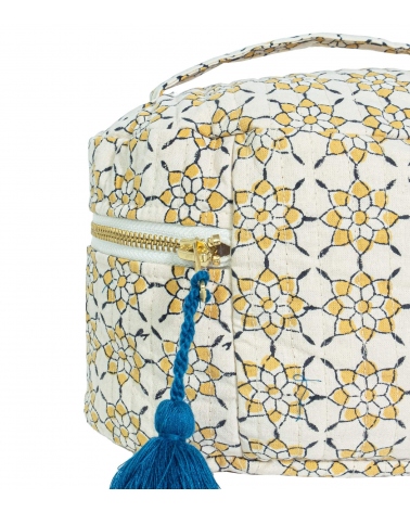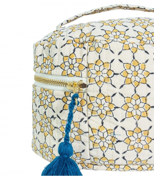 Le vanity en coton PHOOL sera votre accessoire de voyage idéal. À offrir ou à s'offrir, son motif graphique et son pompon coloré apporteront une ambiance chaleureuse dans votre salle de bain.