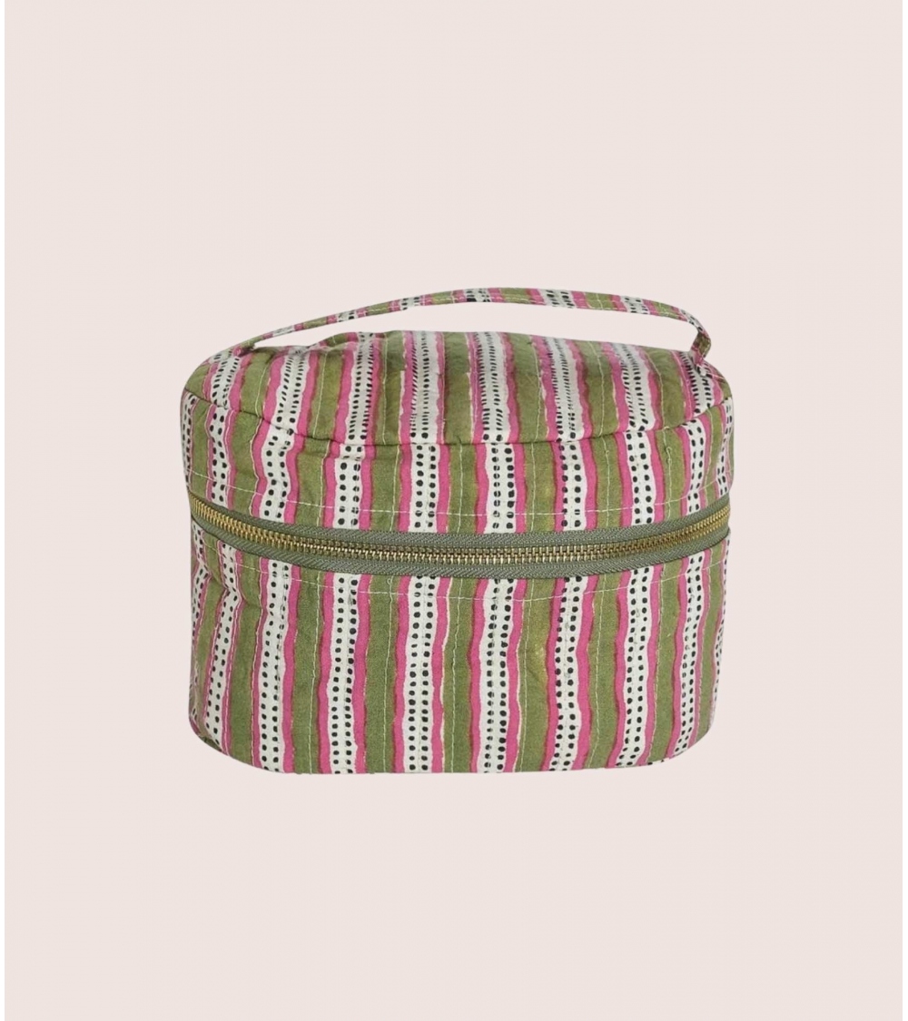 Le vanity en coton STRIPE sera votre accessoire de voyage idéal. À offrir ou à s'offrir, son élégant motif à rayures et son pompon coloré apporteront une ambiance chaleureuse dans votre salle de bain.