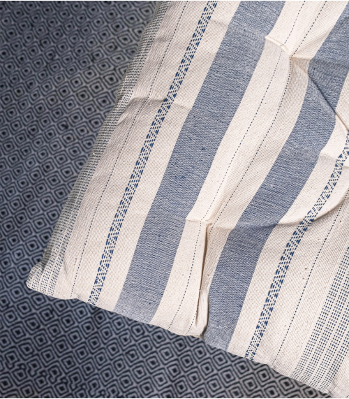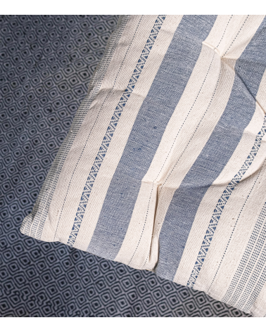 Il sera idéal sur un charpoy, un canapé ou tout simplement en matelas d'appoint. Il est garni de coton, ce qui permet un bon maintien de la forme et un confort d'assise.