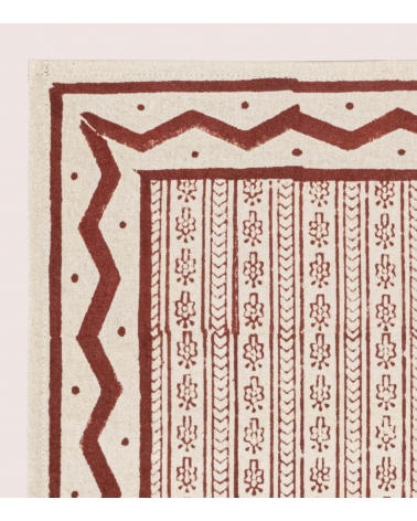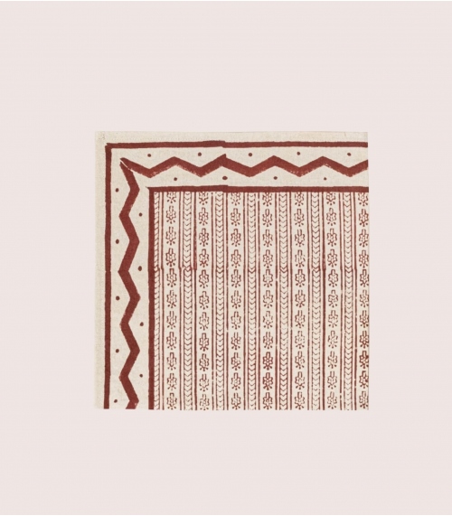 Notre serviette de table ethnique en coton est imaginée à Paris puis imprimée à la main en Inde par des artisans experts dans le plus grand respect de l'artisanat indien. Le blockprint ou impression au bloc de bois est un savoir-faire ancestral du Rajasthan dans l'Ouest de l'Inde. Cela consiste à imprimer à la main le tissu grâce à des tampons de bois sculptés à la main.