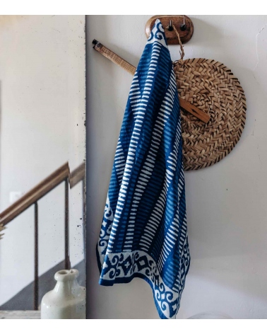 Ce nouveau carré en coton indigo réalisé à base d’une teinture naturelle indigo a été imaginé à Paris et teint à la main par nos artisans experts en Inde. Il est ensuite imprimé au bloc de bois dans le plus grand respect des traditions indiennes. Le blockprint ou impression au bloc de bois est un savoir-faire typique du Rajasthan dans l'Ouest de l'Inde. Cela consiste à imprimer manuellement le tissu grâce à des tampons de bois sculptés à la main. Cette technique d'impression au bloc à l'aide de teintures naturelles est appelée Bagru, nom du village d'où elle est originaire.