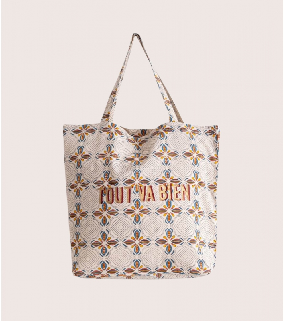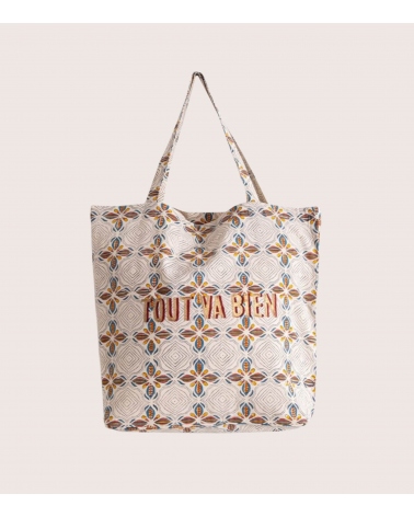 Le tote bag en coton JAAL est l’accessoire idéal pour vos courses au marché, vos virées shopping ou vos escapades à la mer. Inspiré du street art indien, il égayera votre tenue grâce à la combinaison de son joyeux message et de son motif Art Déco.