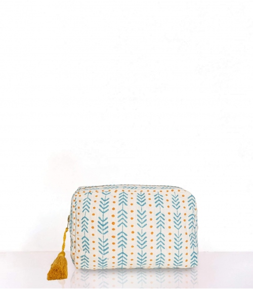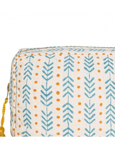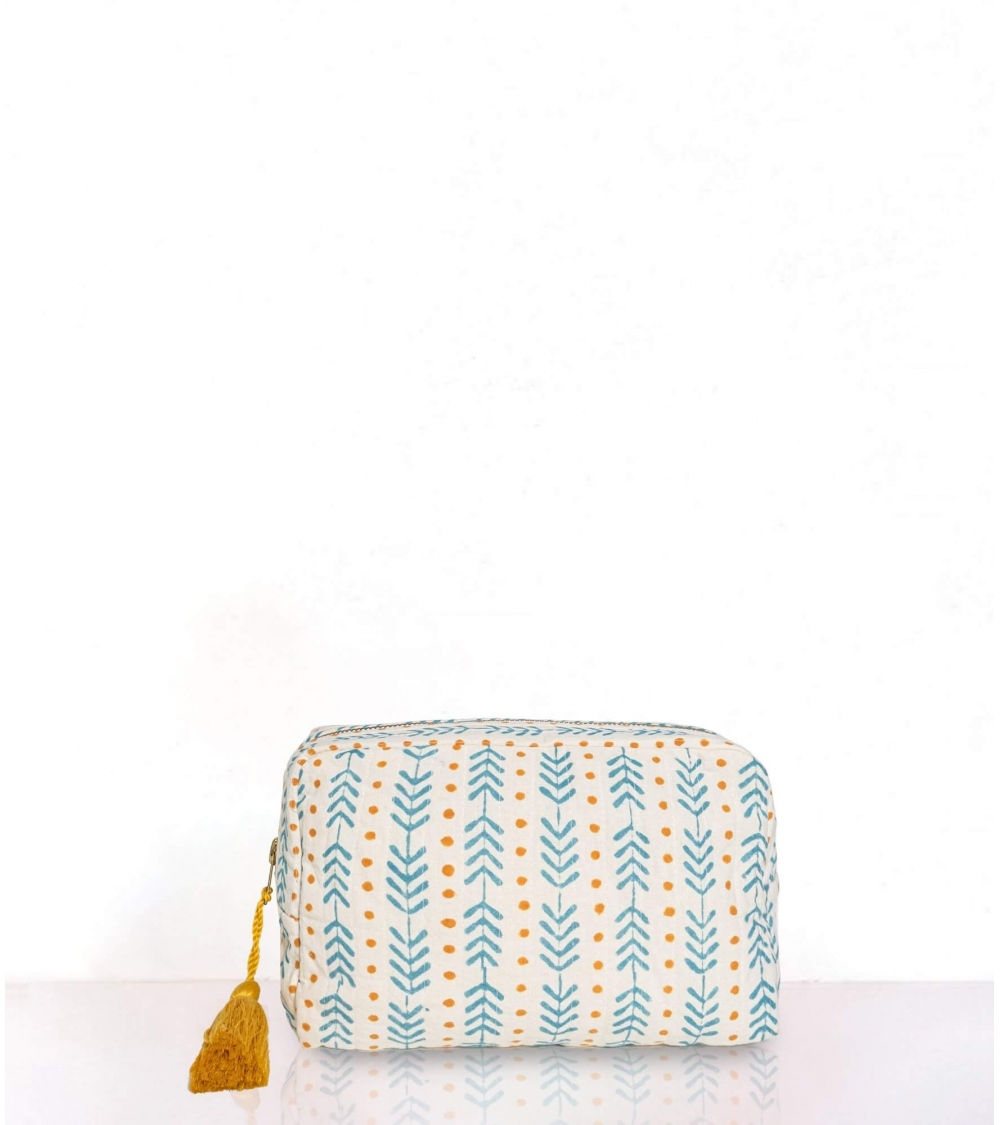 La trousse matelassée à pompon THEA sera votre compagnon de voyage idéal. À offrir ou à s'offrir, son élégant motif géométrique ajoutera une touche chaleureuse dans une salle de bain.