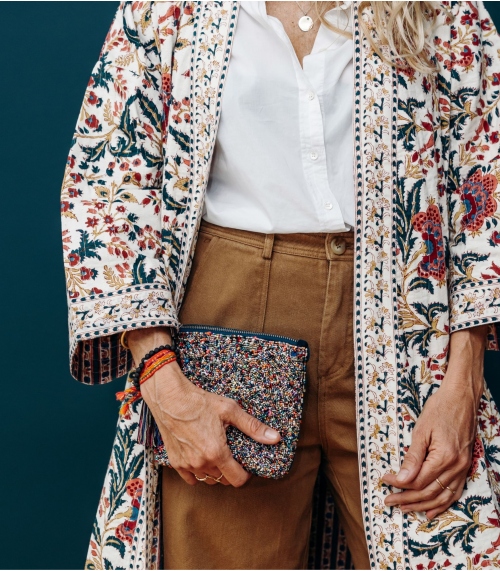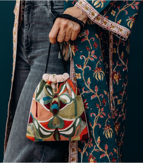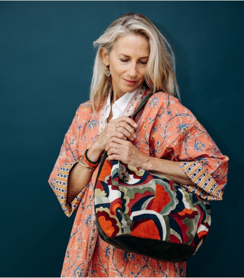 Le sac en velours ZARIKA, orné de motifs ethniques brodés à la main, est l'accessoire parfait pour sublimer vos tenues. Son velours et ses motifs envoûtants apporteront une touche d'élégance et de sophistication, rehaussant chacune de vos tenues.