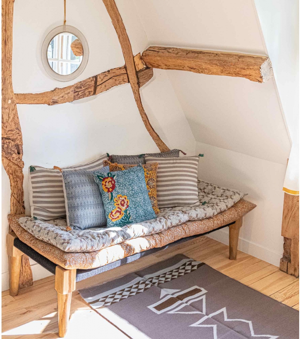 Fabriquée en Inde par des artisans experts selon la technique du tissage sur métier à tisser, un savoir-faire ancestral de la région Assam, cette pièce façonnée à la main contribue à préserver les savoir-faire traditionnels et à soutenir les communautés d'artisans.