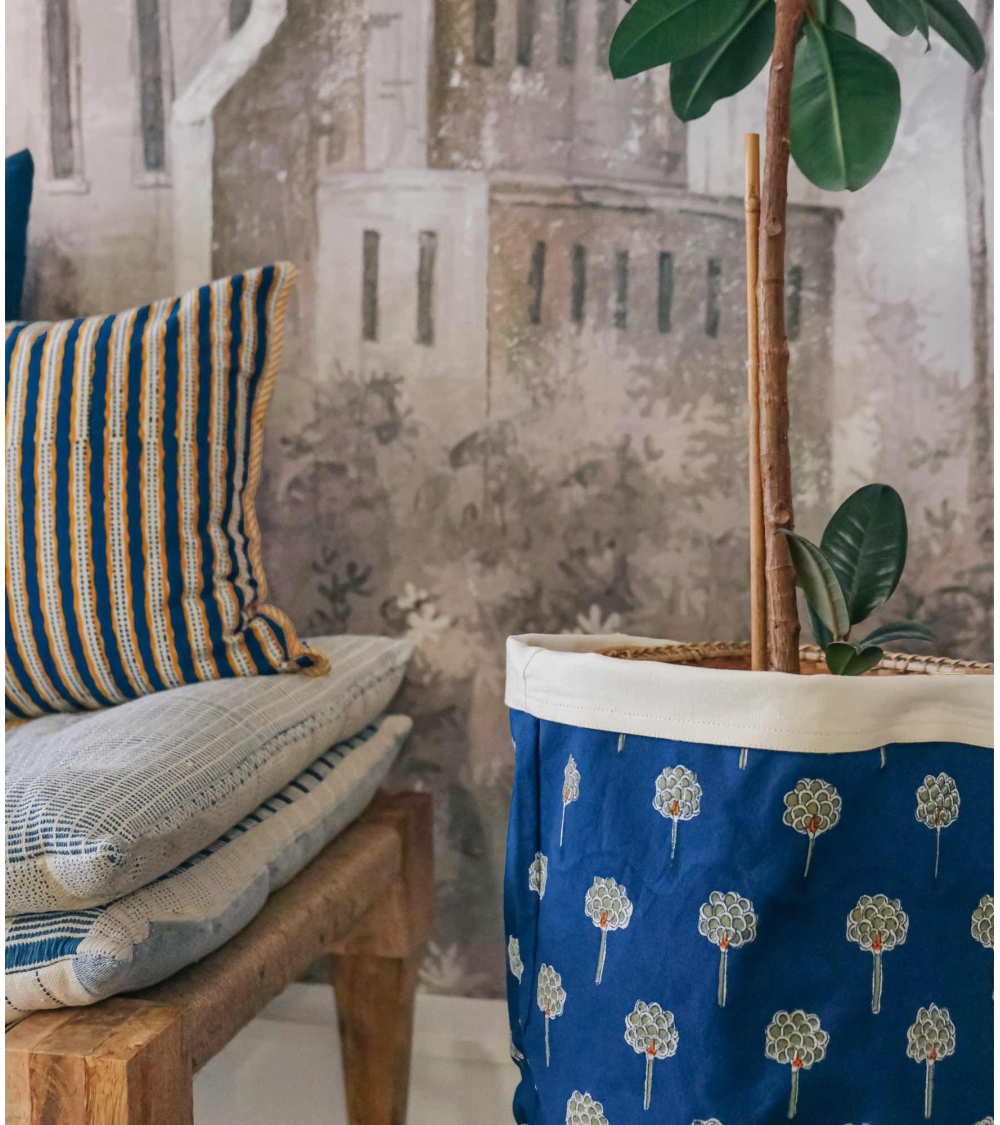Le cache pot en coton RANI arbore une palette de couleurs lumineuse et un motif contemporain indien, qui apportent une élégance poétique et chaleureuse à votre décoration intérieure.