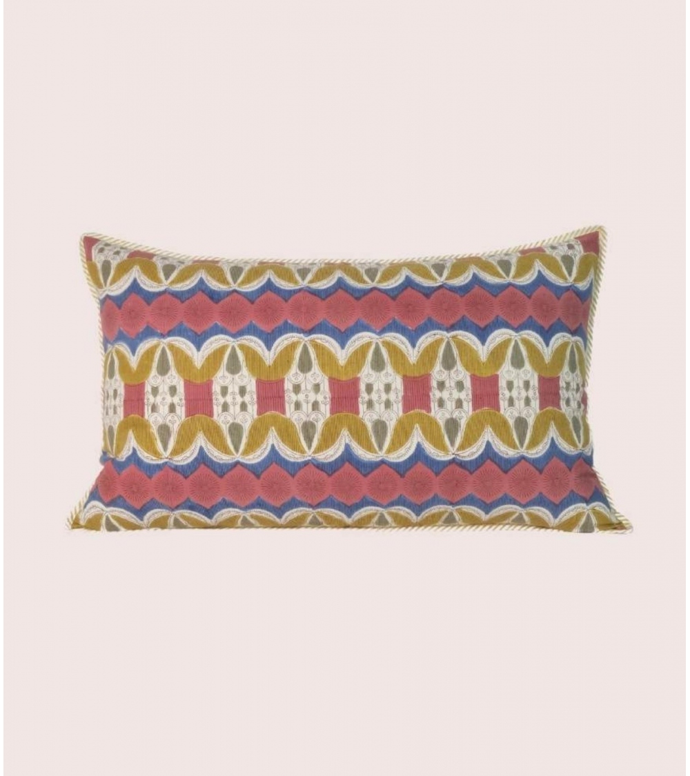 La housse de coussin DUBI arbore une palette lumineuse de couleurs, apportant une élégance bohème et poétique à votre décoration intérieure. Salon, Chambre, elle illumine tous les espaces. Assemblez motifs et couleurs pour une décoration envoûtante et un intérieur raffiné.