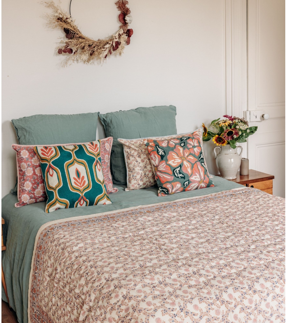 Le couvre-lit ANIMA déploie ses motifs fleuris dans de tendres nuances colorées, pour une touche de poésie et de douceur chez vous.