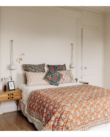 Fabriquée en Inde par des artisans experts selon la technique traditionnelle du blockprint, un savoir-faire ancestral du Rajasthan, cette pièce faite à la main contribue à préserver les savoir-faire traditionnels et à soutenir les communautés d'artisans.