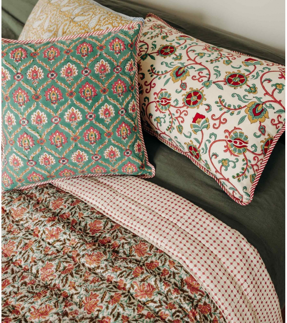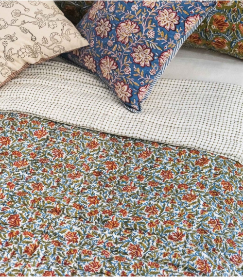 Fabriquée en Inde par des artisans experts selon la technique traditionnelle du blockprint, un savoir-faire ancestral du Rajasthan, cette pièce faite à la main contribue à préserver les savoir-faire traditionnels et à soutenir les communautés d'artisans.