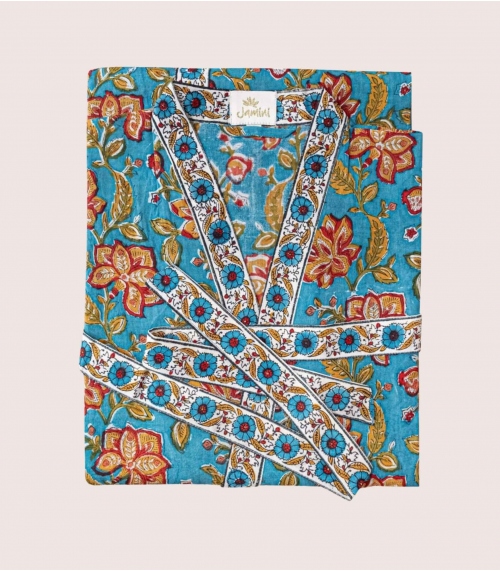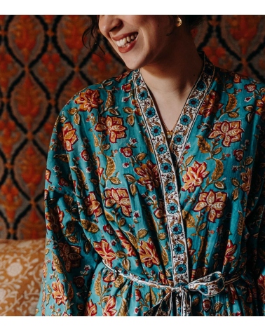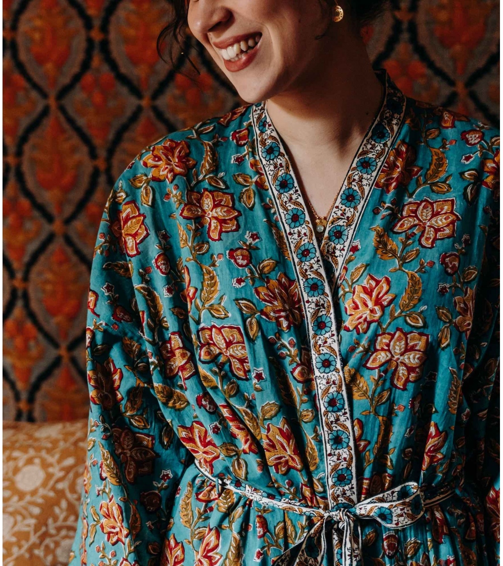 Le kimono en coton RANG se décline dans des couleurs éclatantes et un motif fleuri. À même la peau, associé à un pyjama ou par-dessus un maillot, vous allez adorer sa coupe, sa douceur et sa couleur chatoyante !