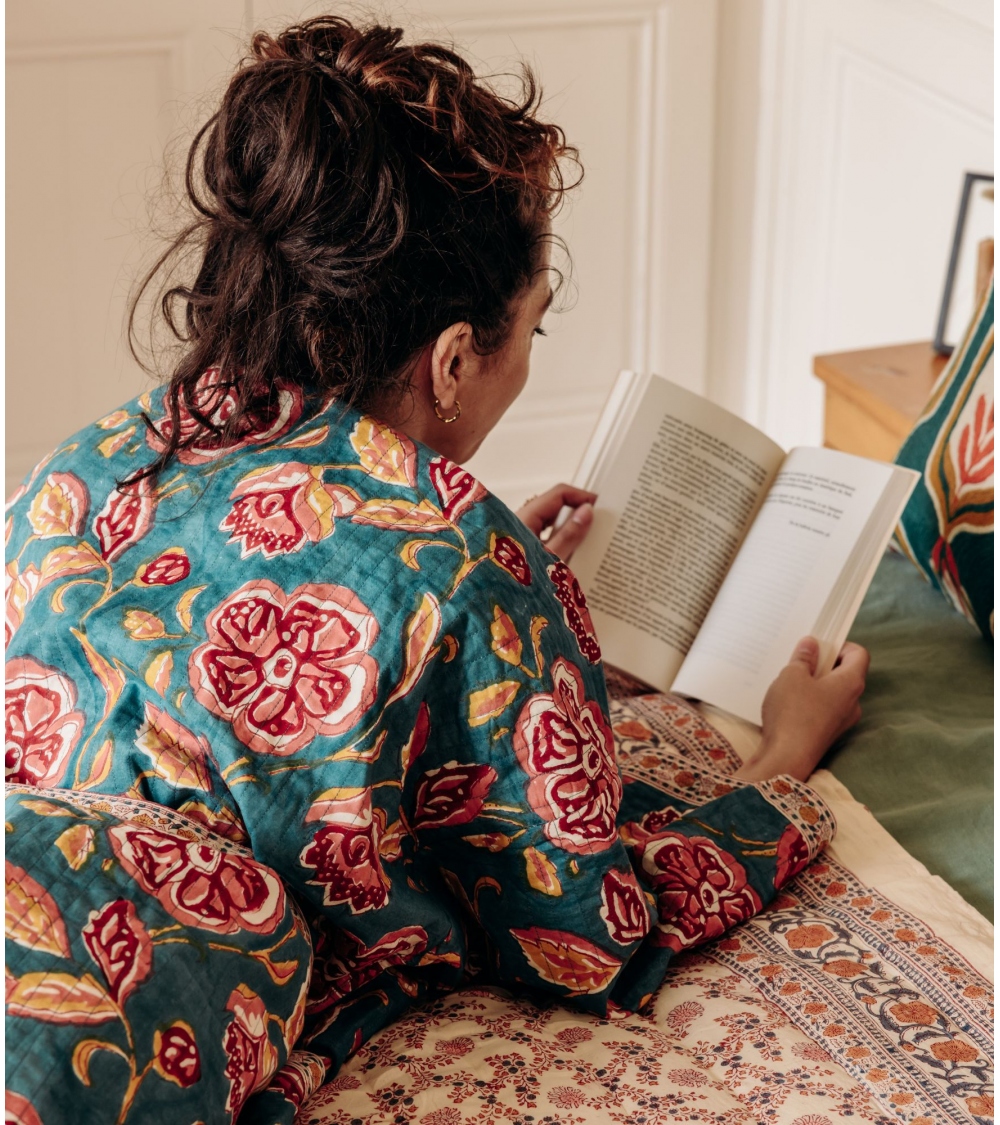 Fabriquée en Inde par des artisans experts selon la technique traditionnelle du blockprint, un savoir-faire ancestral du Rajasthan, cette pièce faite à la main contribue à préserver les savoir-faire traditionnels et à soutenir les communautés d'artisans.