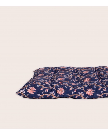 Il sera idéal sur un charpoy, un canapé ou tout simplement en matelas d'appoint. Il est garni de coton, ce qui permet un bon maintien de la forme et un confort d'assise.