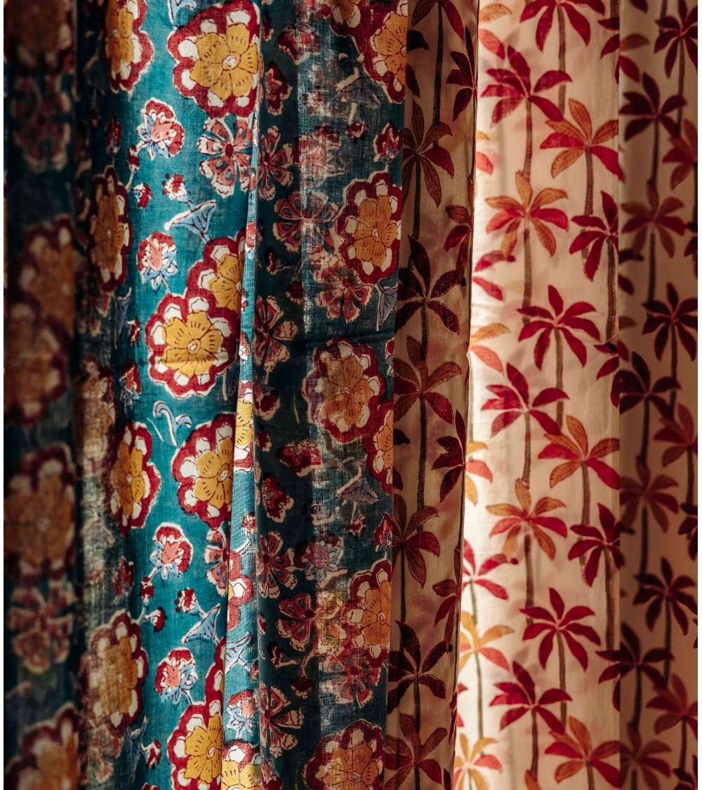 Le rideau en voile de coton DALIA arbore des nuances de couleurs chatoyantes et un motif fleuri tout en transparence, apportant une élégance poétique à votre décoration intérieure. Assemblez motifs et couleurs pour une décoration envoûtante et un intérieur raffiné.