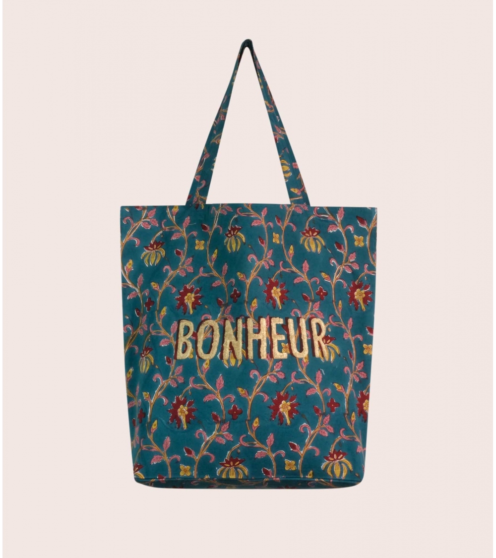 Le tote bag en coton DINTY est l’accessoire rêvé pour vos courses au marché, vos virées shopping ou vos escapades à la campagne. Inspiré du street art indien, il égayera votre tenue grâce à la combinaison de son joyeux message et de son motif fleuri.