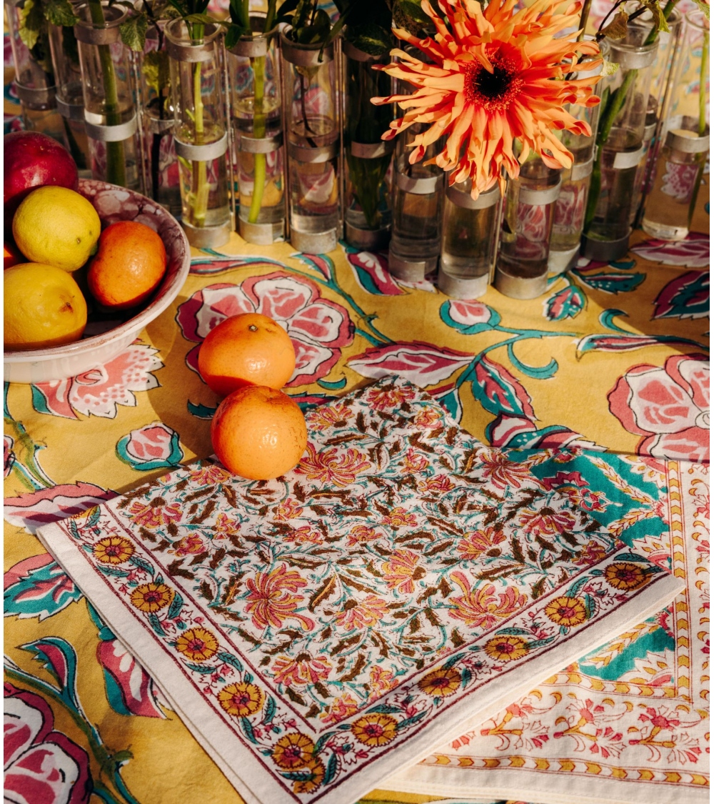 La serviette en coton REEMA est une pièce joyeuse et lumineuse pour décorer votre table avec son motif iconique. Parfaite pour élaborer une ambiance colorée et bohème à table, cette serviette peut être assortie à nos sets de table pour une harmonie visuelle élégante.