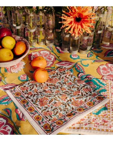 Fabriquée en Inde par des artisans experts selon la technique traditionnelle du blockprint, un savoir-faire ancestral du Rajasthan, cette pièce faite à la main contribue à préserver les savoir-faire traditionnels et à soutenir les communautés d'artisans.
