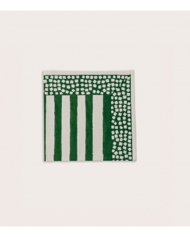 • Lathi Green : fond écru, rayures verticales vertes sur le recto et motifs géométriques écrus sur fond vert au verso
