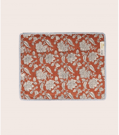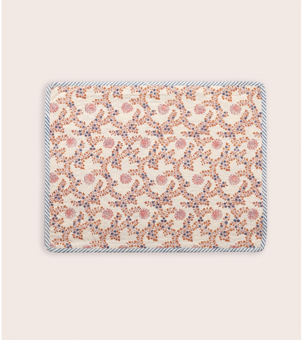 Fabriqué en Inde, ce set de table matelassé est le fruit d’un savoir-faire ancestral. Réalisé à la main selon la technique traditionnelle du blockprint, propre au Rajasthan, chaque pièce est façonnée par des artisans passionnés. Ce processus artisanal contribue à préserver les traditions uniques du pays et soutient les communautés locales.