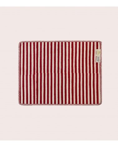 Le set de table matelassé Sarso est lavable en machine à 30°C. Privilégiez un séchage à l'air libre pour préserver ses couleurs et la qualité de son impression block print dans la durée.