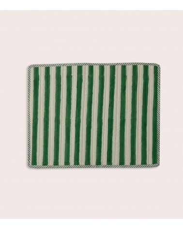 • Finition : format matelassé et réversible, bordure écru rayée encadrant le set.