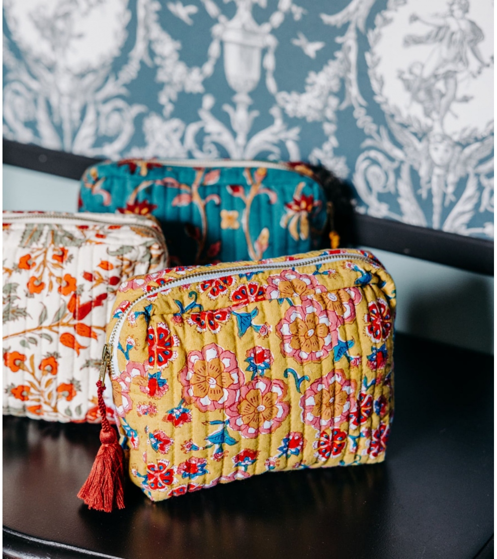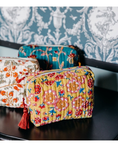 La trousse matelassée à pompon DALIA sera votre compagnon de voyage idéal. À offrir ou à s'offrir, son élégant motif fleuri ajoutera une touche chaleureuse dans une salle de bain.